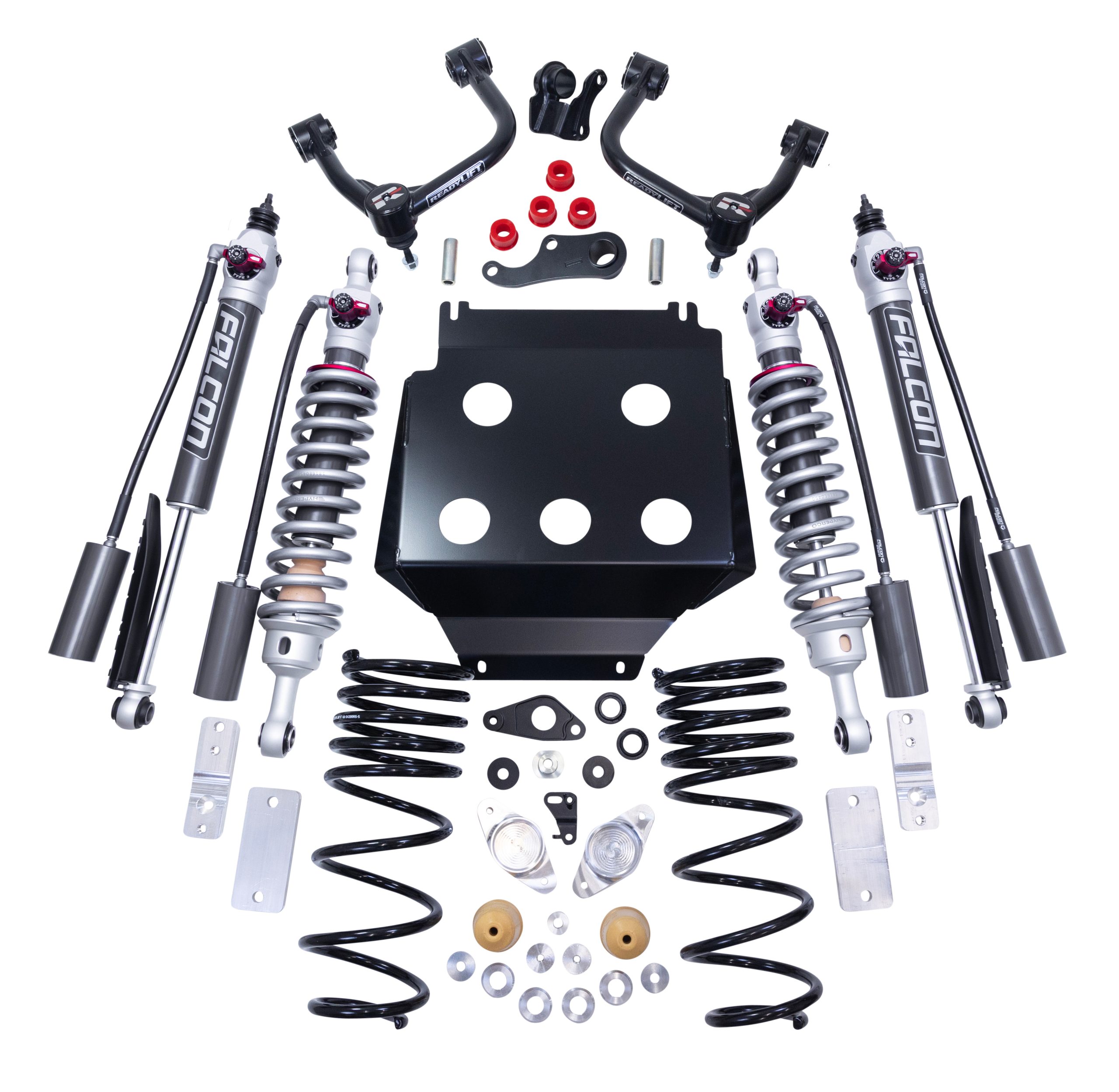 Featuring the all-new Falcon 3.3 Fast Adjust shocks, you get on-the-fly tuning for everything from highway cruising to rocky climbs. Paired with heavy-duty DOM tubular UCAs, improved geometry, and a bold new stance, SST3.3 gives your Toyota the feel and performance worthy of its heritage.