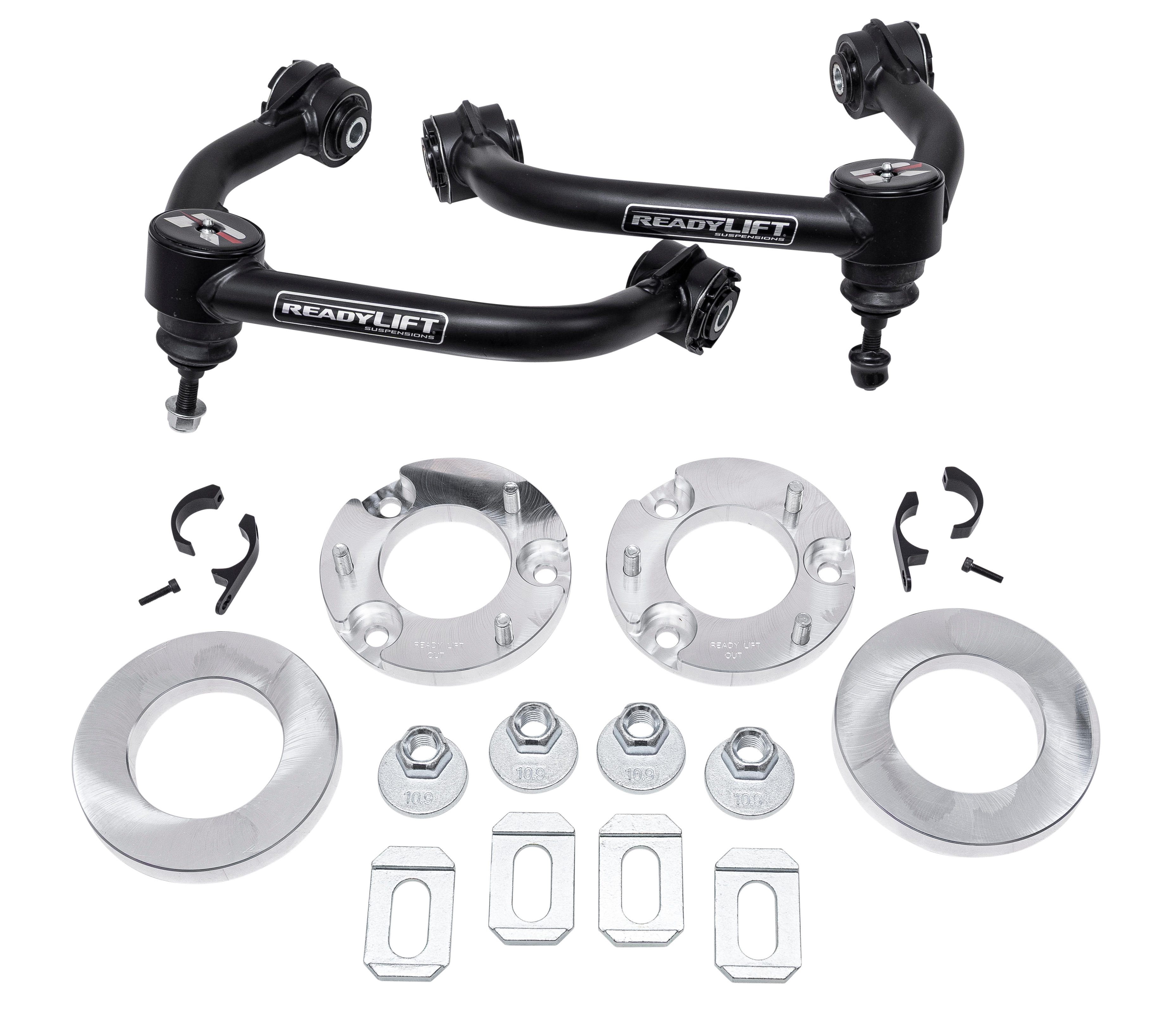 Includes ReadyLIFT tubular Upper Control Arms with corrected ball joint angles